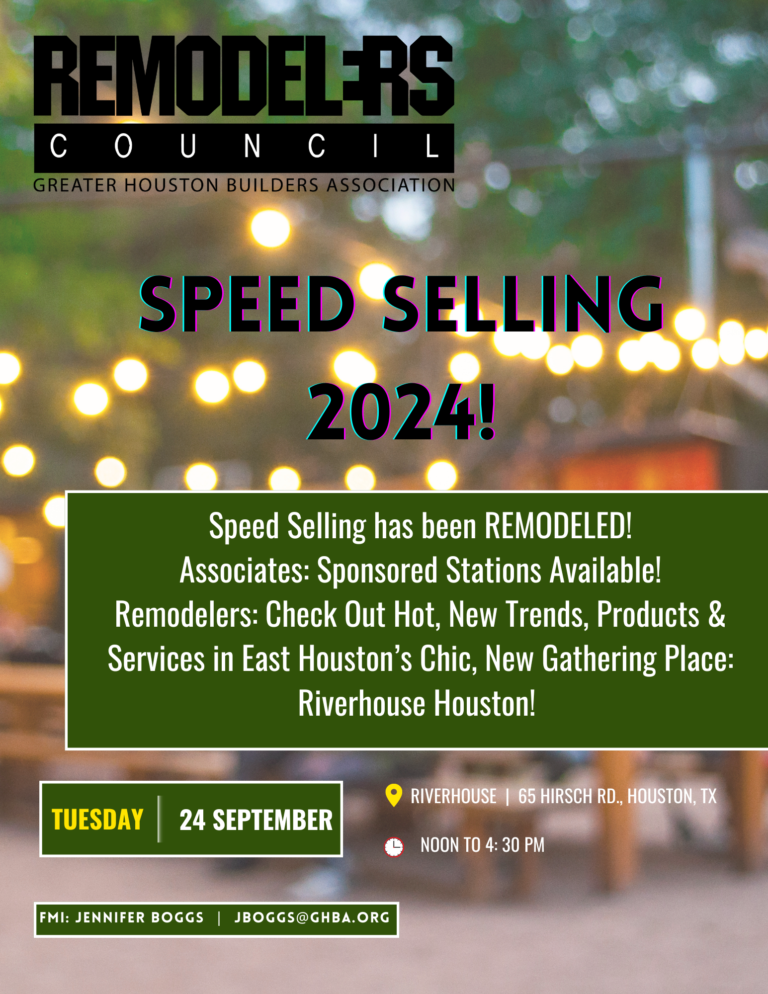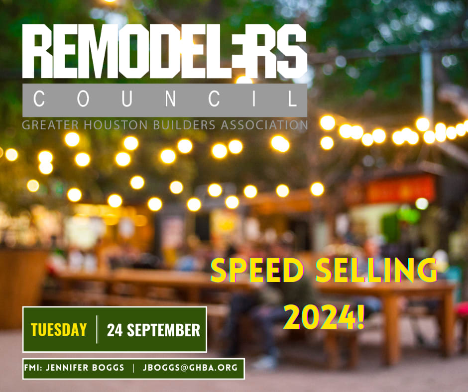 Associates! Don't miss this EXCLUSIVE opportunity to get in front of some of the hottest Remodelers in the Greater Houston area at this year's Remodeler's Council Speed Selling Event!