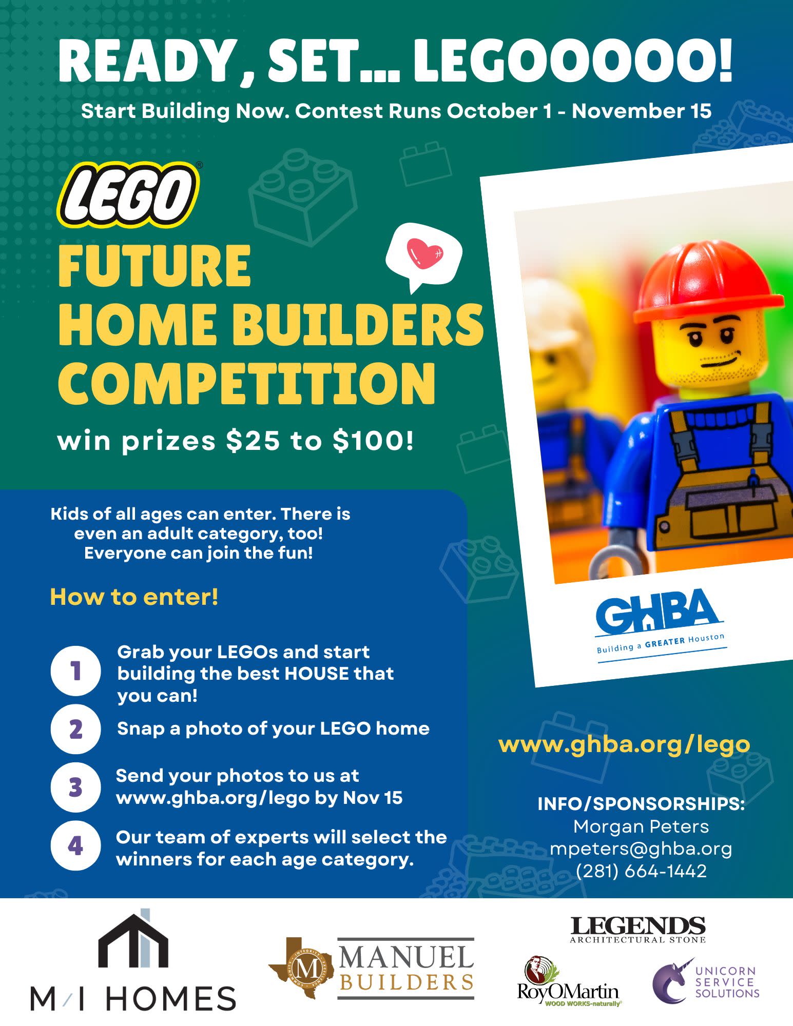LEGO Future Homebuilder Competition is back in 2024! As we celebrate Careers in Construction Month during the month of October, the GHBA invites kids ages 3 to 100 to show off their LEGO master homebuilding skills.