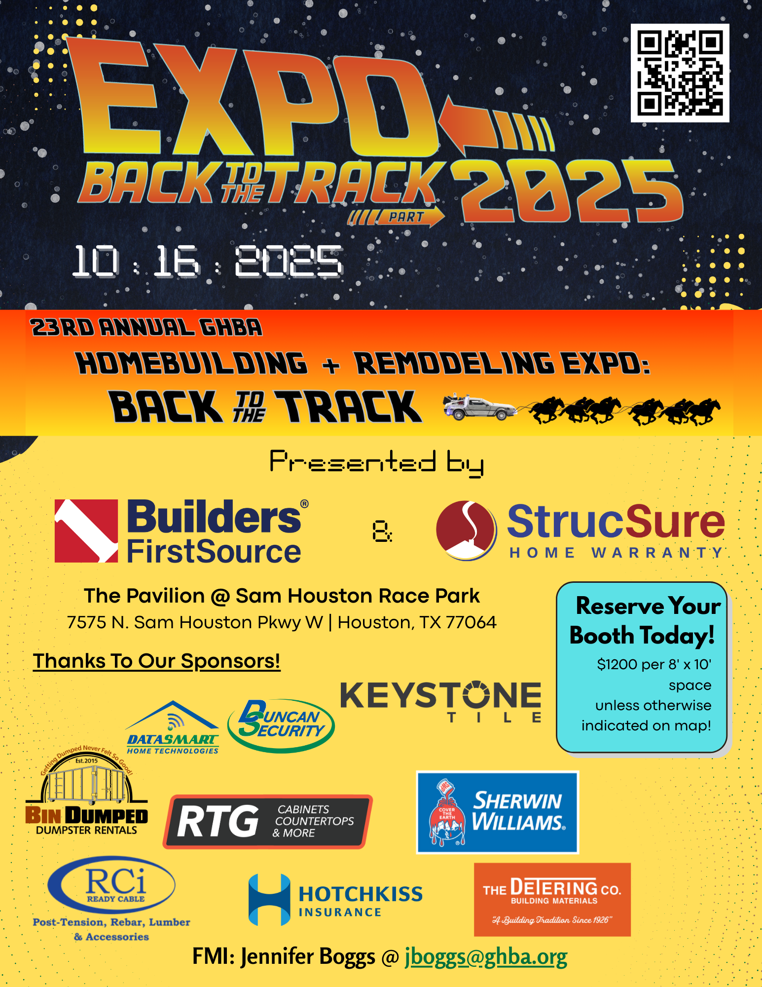 Don't miss the Expo this year! This event is a great chance to connect with hundreds of builders, remodelers, and developers in a fun, high-energy setting. Limited booths and sponsorships are still open, so grab your spot today!