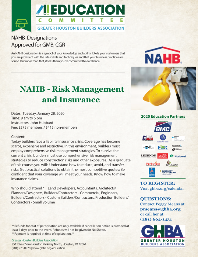 NAHB - Risk Management & Insurance**ONLINE REGISTRATION CLOSED**
