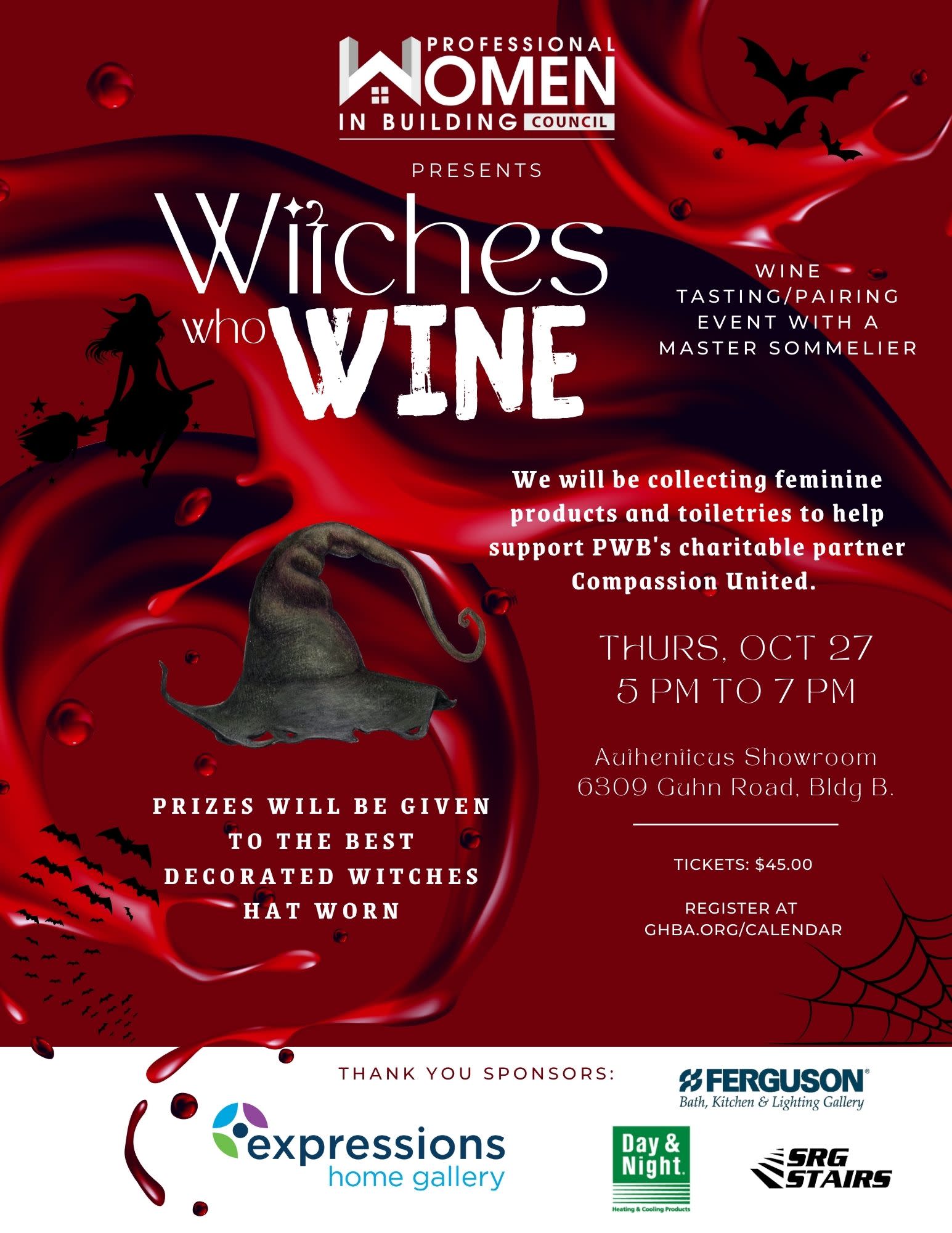 Join us for a wine tasting/pairing with a master sommelier and enter into the best decorated witches hat contest!