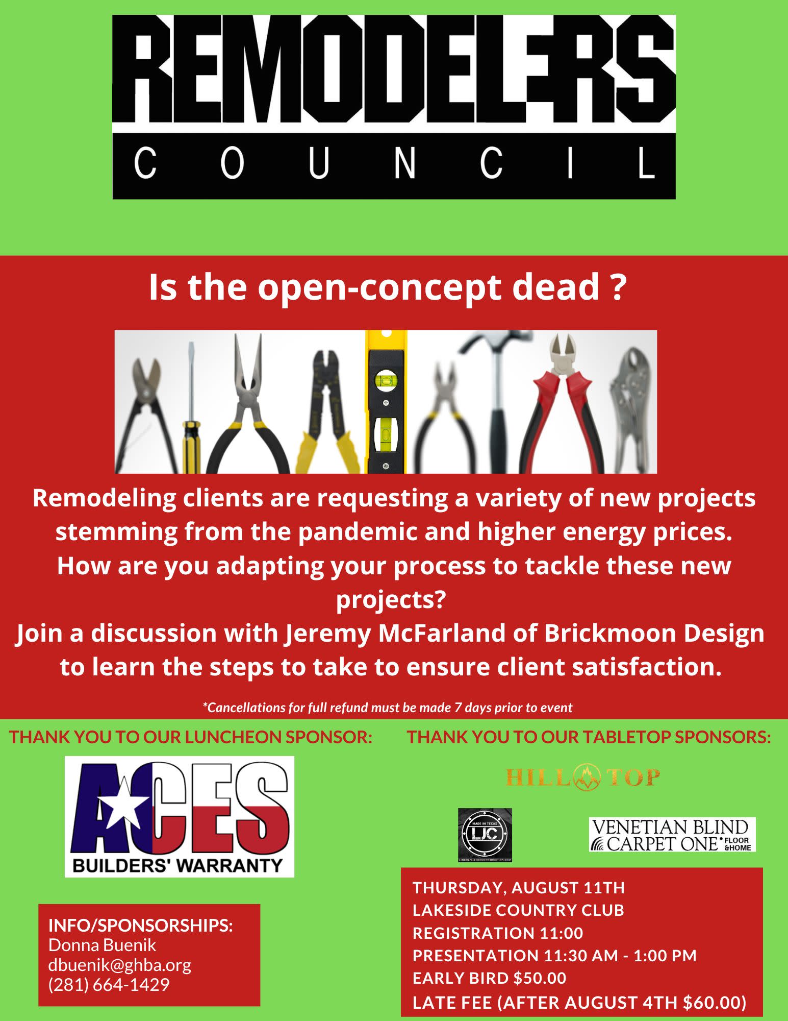 Remodelers Council Meeting - August 2022*REGISTRATION AVAIL. AT DOOR*