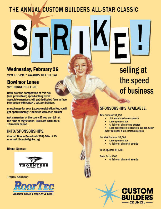 To participate in this event, e-mail Donna Buenik at DBuenik@ghba.org with your preferred category selection.