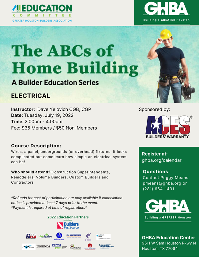 The Electrical System (This class is part of the ABC's of Home Building Series & is approved for the new GHBA Designations Program. )